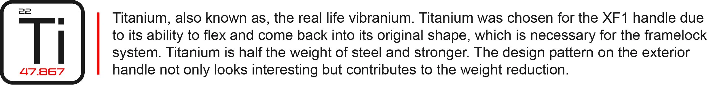 XF1 Geo Blade edition geometric pattern was inspired by our own Aero Ti chopsticks cut out. The geometric pattern is on both sides of the blade and was etched with a fiber laser. XF1 is the Gentleman’s Folding Knife. Designed around the uniquely milled out lightweight Titanium handle, the XF1 Folding Knife features a VG10 blade with a combined weight of only 3.3 oz. XF1 uses a frame lock system to securely hold the blade in place when in use. When not in use, XF1 was designed for deep concealment in pockets. The slim and geometric profile is for maximum comfort. XF1 is a reliable EDC; durable, thin, and lightweight.